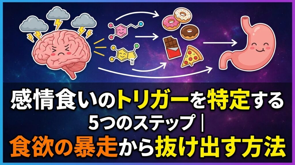 感情食いのトリガーを特定する5つのステップを解説。寂しさ、ストレス、不安など感情的食欲の引き金を見極め、食欲の暴走を止める具体的な方法をご紹介します。