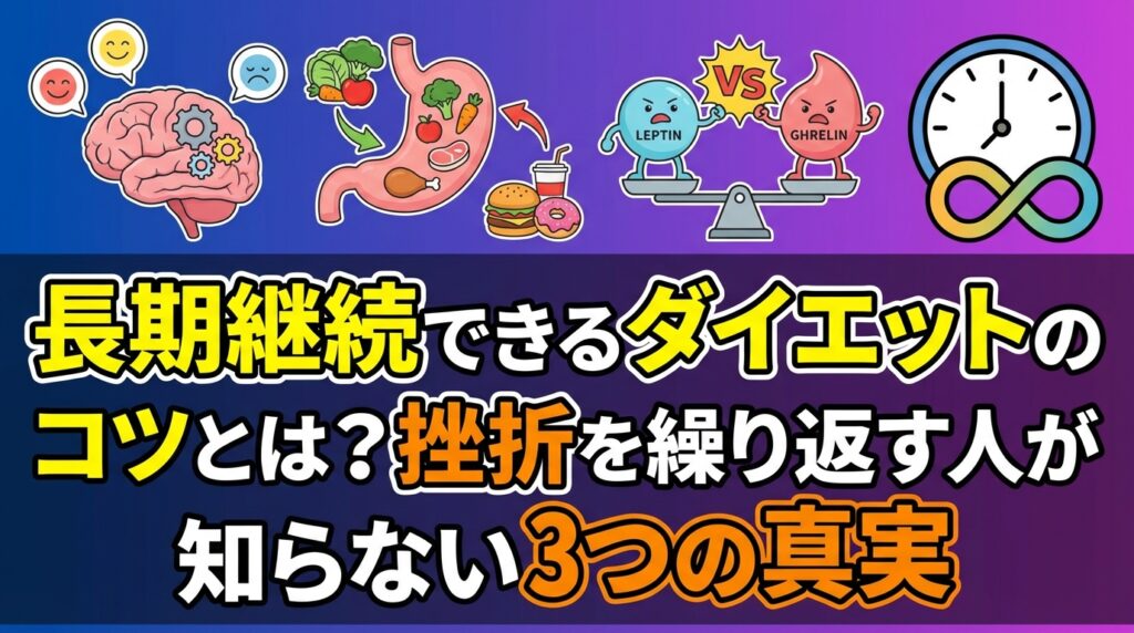 長期継続できるダイエットのコツは根性論ではなく、脳と体の仕組みを味方につけることです。セルフダイエット卒業コーチ®富永康太が、リバウンドを繰り返す人が知らない継続の真実を解説します。 -
