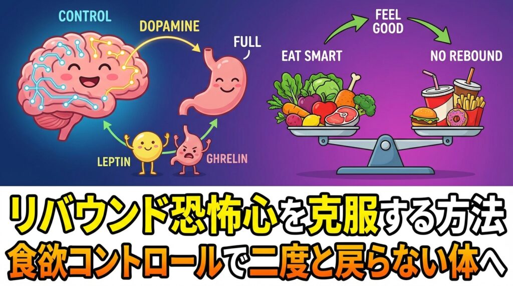 リバウンドの恐怖心を抱えるあなたへ。脳科学と心理学に基づいた克服法を解説。意志力に頼らず、食欲の根本原因にアプローチする方法で二度と戻らない体を手に入れましょう。 -
