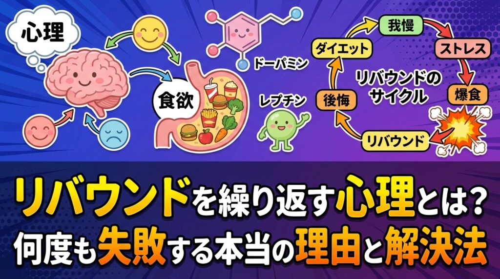 リバウンドを繰り返す心理の根本原因は意志の弱さではありません。ホルモン、愛着、自己肯定感から何度も失敗するメカニズムと本当の解決法を解説します。 -