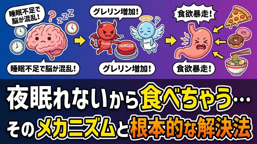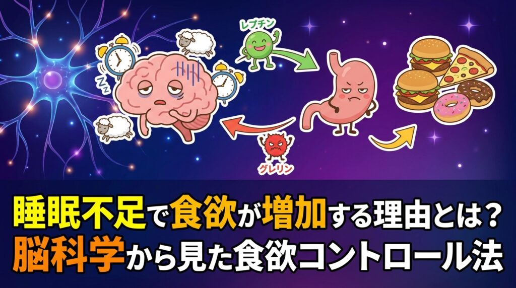睡眠不足で食欲が増加するのは意志が弱いからではありません。脳内ホルモンの変化が原因です。セルフダイエット卒業コーチが科学的根拠と具体的な対策を解説します。 -
