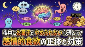 対処法:日中の制限を緩めること。完璧を目指すから反動が来るんです。昼間に「ちょっとだけ甘いもの」を食べるとか、小さな息抜きを意識的に作ってみて。