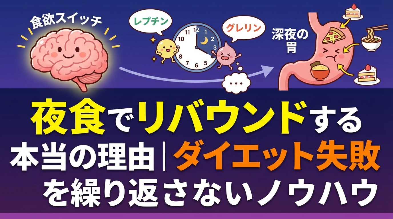 この記事は「夜食とリバウンドの関係」にフォーカスしています。夜食がやめられない原因と対策の全体像はこちらの記事をご覧ください。