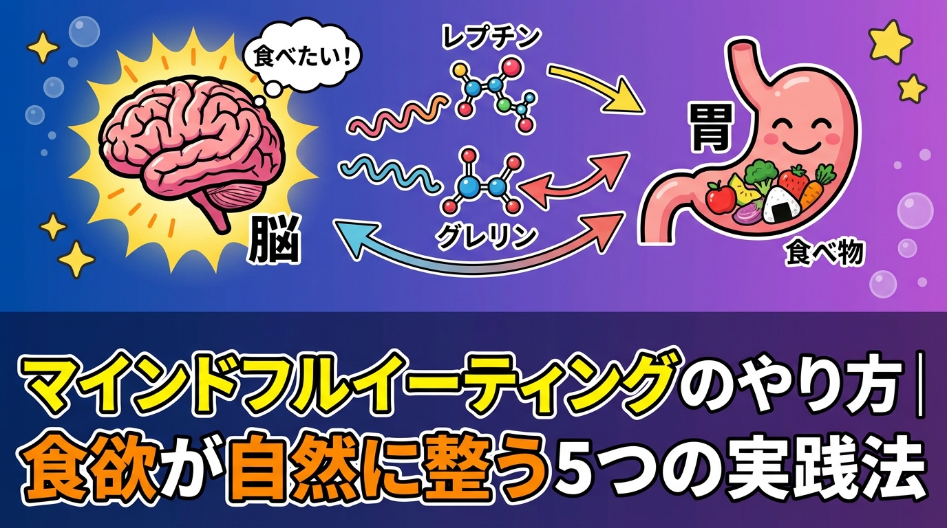 この記事では、今日からすぐに実践できるマインドフルイーティングの具体的なやり方を、ダイエット指導の現場で実際に効果があった方法に絞ってお伝えします。「何を食べるか」ではなく「どう食べるか」を変えるだけで、あなたの食欲は驚くほど落ち着いていきますよ。