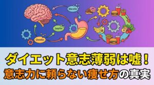 A. 意志力に頼るダイエットは長続きしません。食欲は脳・ホルモン・心理状態によって制御されており、「仕組み」を理解して環境や習慣を整えることで、意志力に頼らず自然にコントロールできるようになります。
