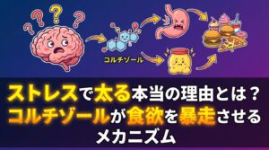 コルチゾール(ストレスホルモン)が慢性的に高い状態が続くと、脳は糖質と脂質を強烈に求めるようになります。また、睡眠不足はグレリン(空腹ホルモン)を増加させ、レプチン(満腹ホルモン)を低下させます。